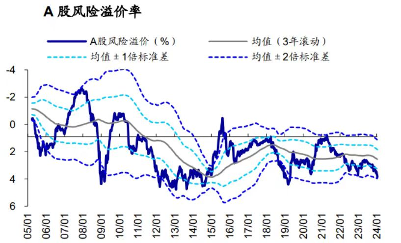 A股风险溢价率为3.82%,接近2005年以来均值2倍标准差,当前处于性价比较高区间。