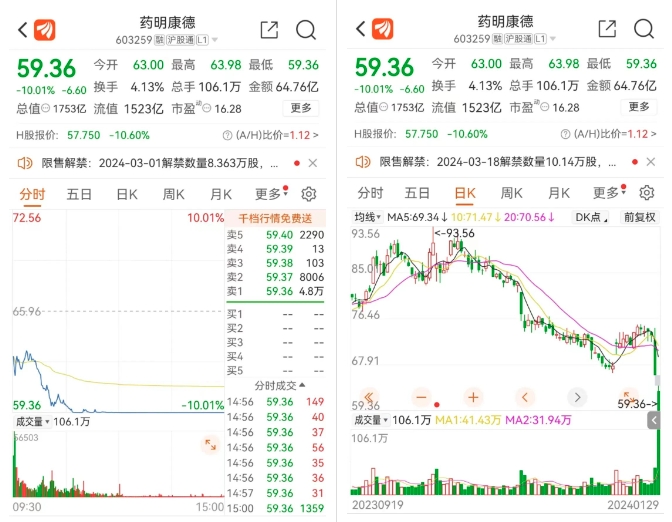 从个股来看,药明康德自上周五跌停后,昨天继续跌停,2天蒸发市值超160亿元。
