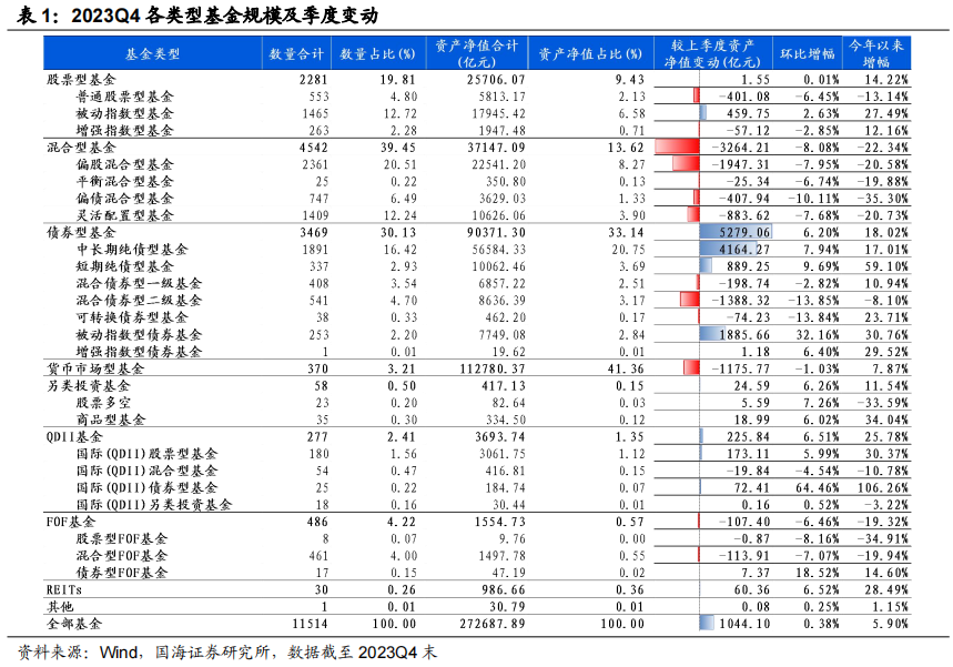 (图片来源:国海证券研究所《公募基金2023年四季报全景解析》,发布时间:2024/1/25,数据截至2023/12/31,不作投资推荐),