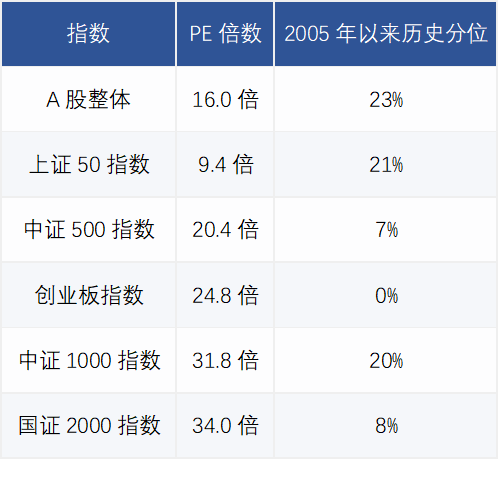 从估值的角度来看,当下的A股的确处于一个相对历史低位,A股主要宽基指数历史分位均处于30%以下的“低估”区域。
