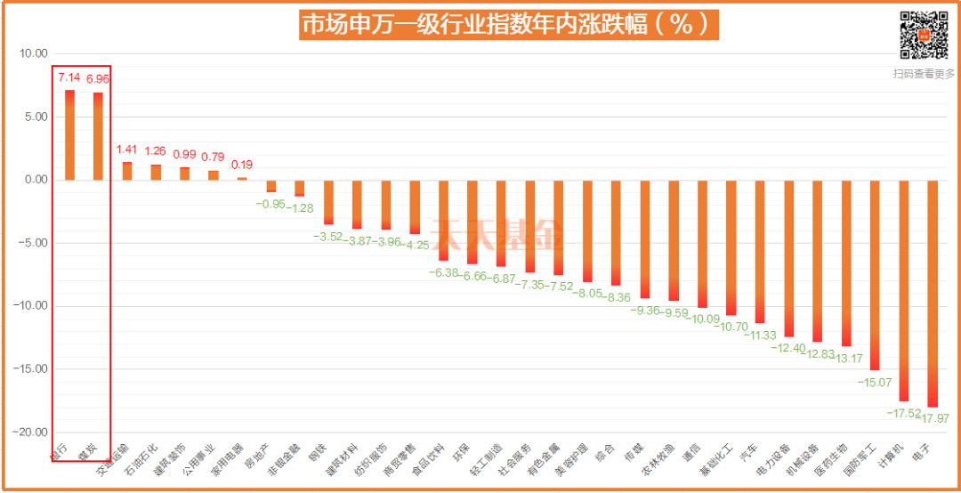 前面也提到了,年内高股息板块逆势走强,银行、煤炭等板块涨幅超过5%,位居申万**行业年内涨幅榜前列。