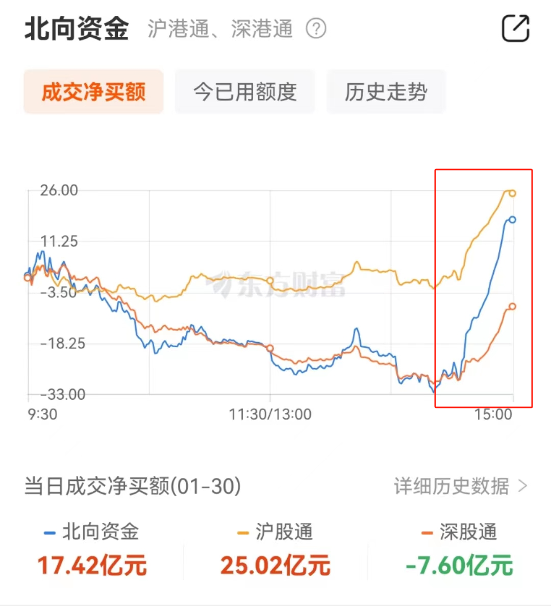不过北向资金已经连续第二天尾盘抢筹了,直接从流出转为了净流入,全天净流入17.42亿元,小编也不好说外资这抄到的是底还是半山腰了。