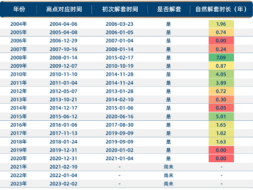 股市如此,水大鱼大,权益基金亦是如此。我们以万得偏股混合型基金指数(885001.WI)为例测算了在历年该指数**点买入主动权益基金后的自然解套时长,发现如下规律: