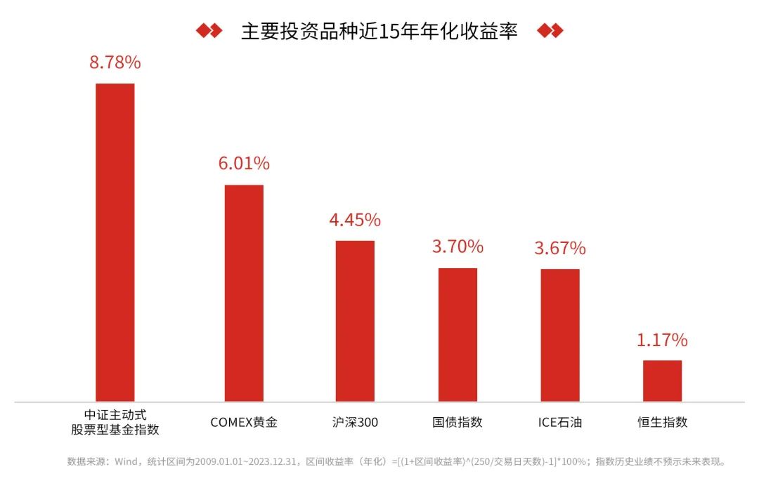 从近15年来看,在众多主流的投资产品中,公募基金的收益表现还是比较突出的。