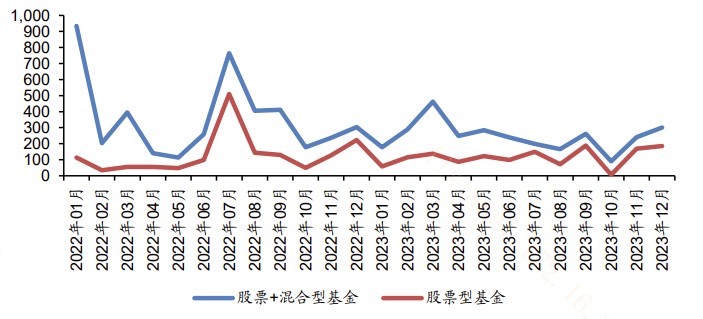图:新发股混基金、股票型基金规模变化趋势(亿元)