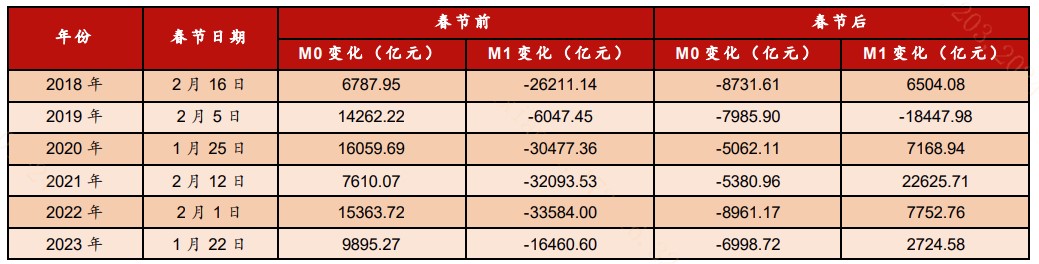 表:春节前后M0和M1变化情况