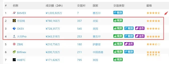 不支持法币购买(支付宝、微信、银行卡),没有数字货币合约(杠杆)产品,交易手续费0.05%。币安(Binance)是OKCoin的团队创始成员赵长鹏、何一出来创业开的交易所,成立时间不到1年时间,但是凭借雷厉风行的免手续费、送跑车等营销策略,异军突起,成为目前公认的三大交易所之一。