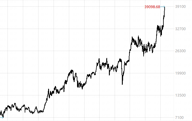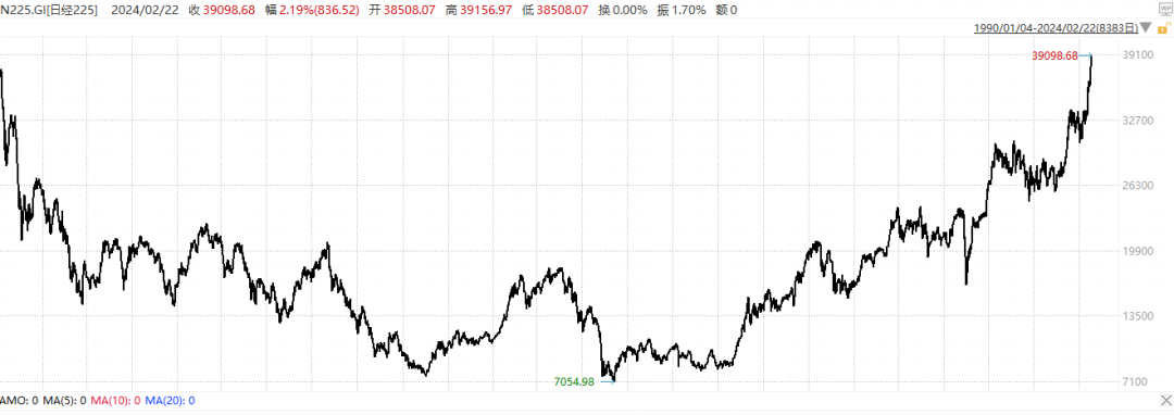 2024年2月22日,日经225指数终于超越了19**12月29日的38957.44点,用了34年的时间,创出了历史新高——39156.97点。
