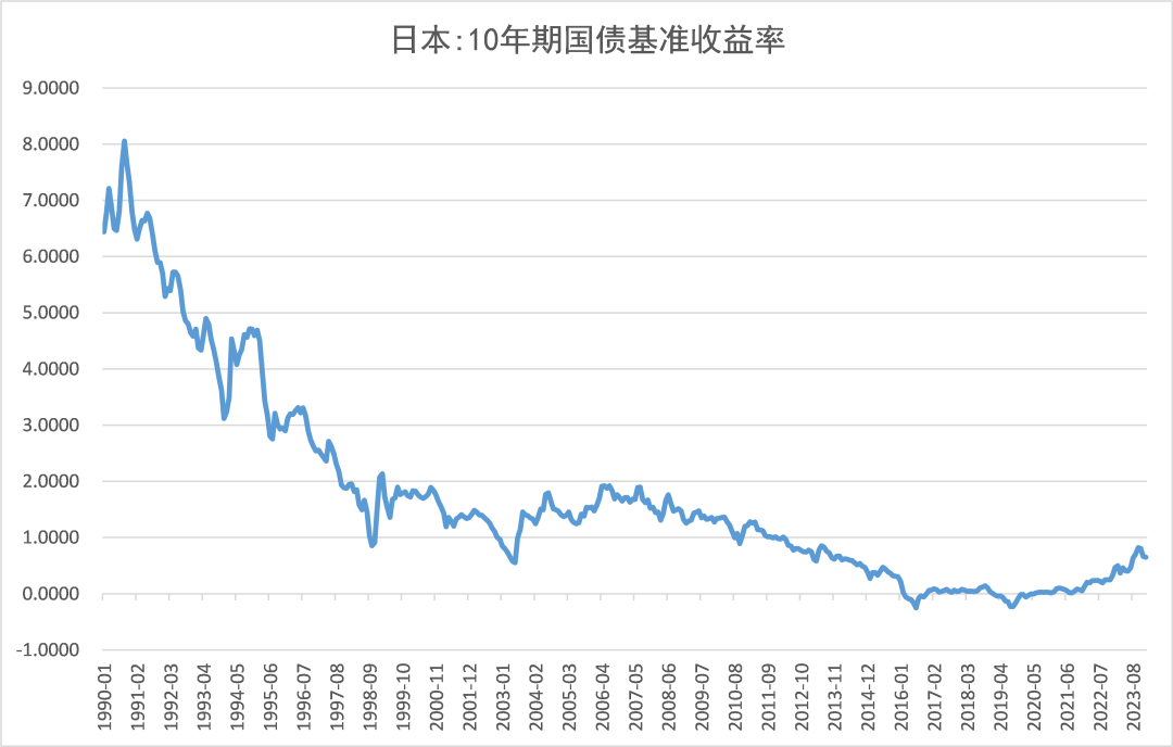 日本的10年国债收益率也是一路向下,从2000年以后就没上过2%,2013年以后持续低于1%,甚至出现过“负利率”。