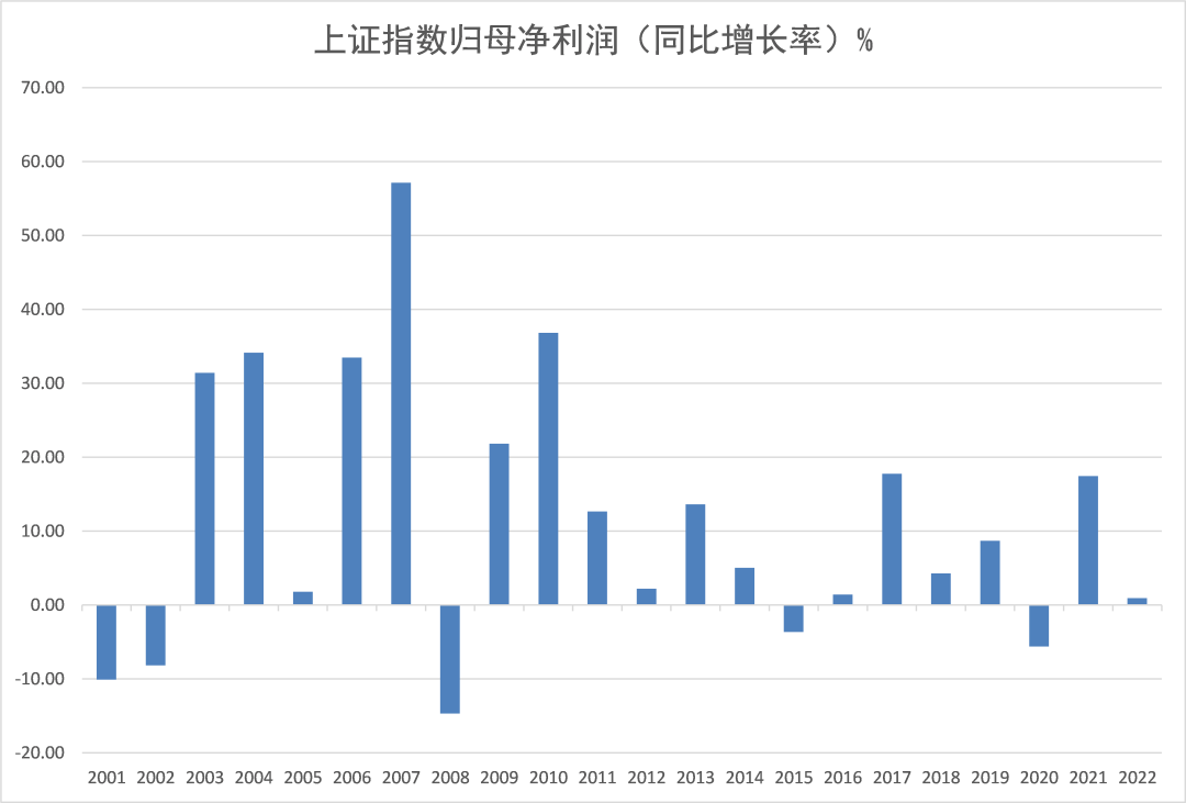 2001-2011年,上证指数作为一个整体,净利润增速平均值是17.86%;