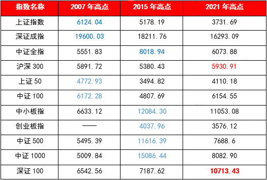 比如中证500、中证1000在2015年牛市时就超越了2007年的高点;沪深300在2021年也超越了2007年高点。