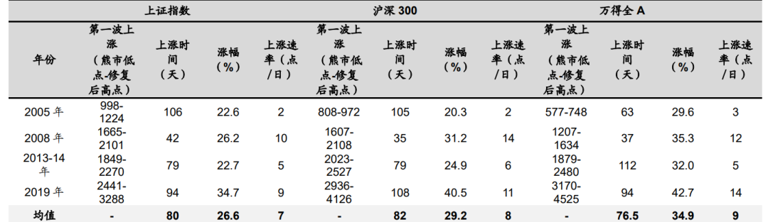 图:过去四次大底后的**波反弹行情