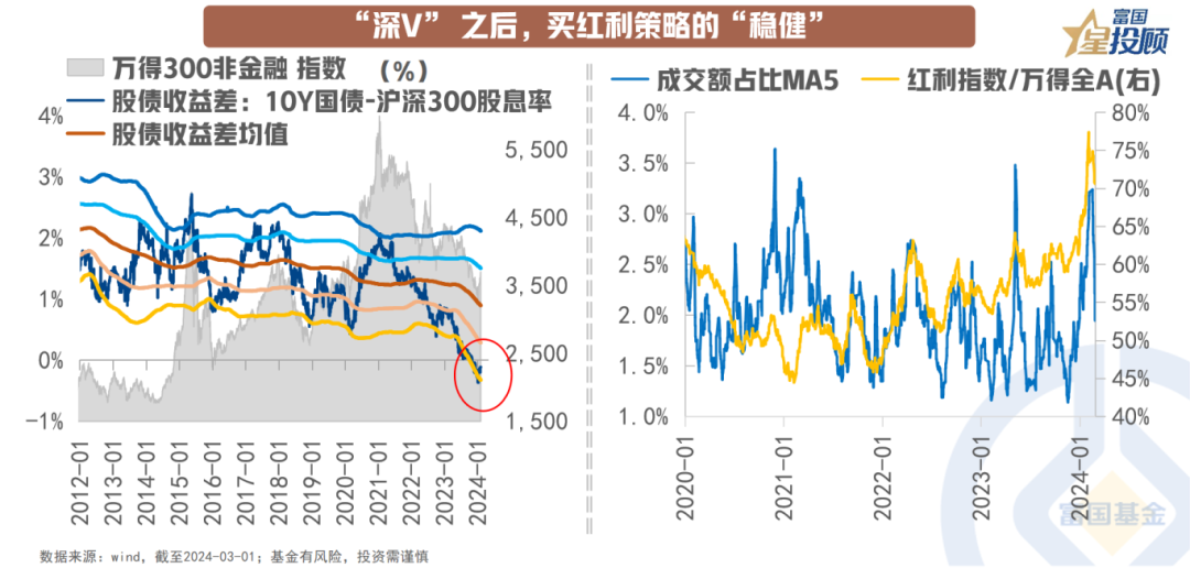 结合发达**经验,在经济降速的过程中,稳定的ROE资产可能有持续配置的必要性。当前,**经济正处于从中高速增长,向中低速增长转变的过程中,红利策略从资产配置的维度上体现出“稳健”。此外,红利策略的风险点在于短期拥挤,及未来赤字扩张或地产修复,需要时刻关注“稳健”资产的“不稳健”诱因。
