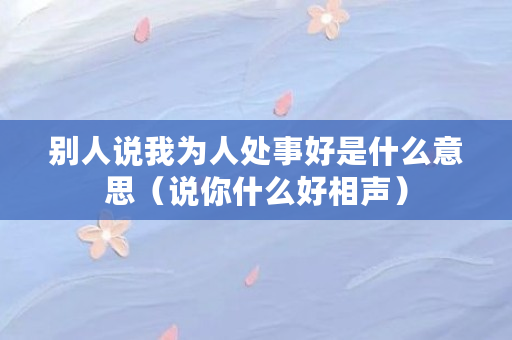 别人说我为人处事好是什么意思(说你什么好相声)