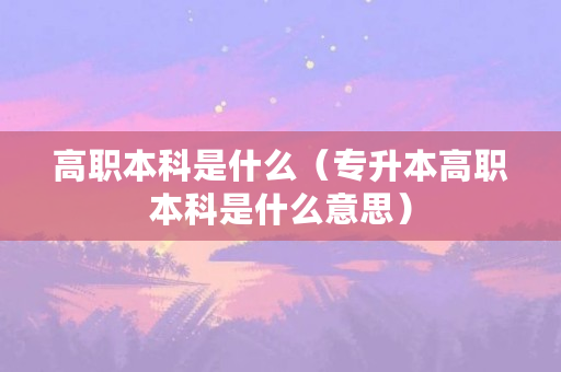 以上**就是关于高职本科是什么意思的详细介绍,如果对你有所帮助或希望获取更多高职本科是什么意思的资讯内容,欢迎收藏关注本站。