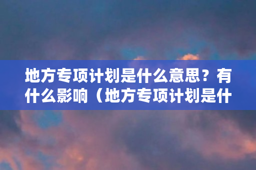 地方专项计划是什么意思?有什么影响