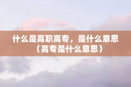 什么是高职高专,是什么意思(高专是什么意思)