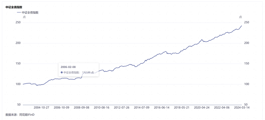 同花顺数据显示,截至3月13日,中证全债指数今年以来涨幅2.03%,30年国债指数今年以来涨幅5.62%。中长期纯债基金指数今年以来上涨1.10%。
