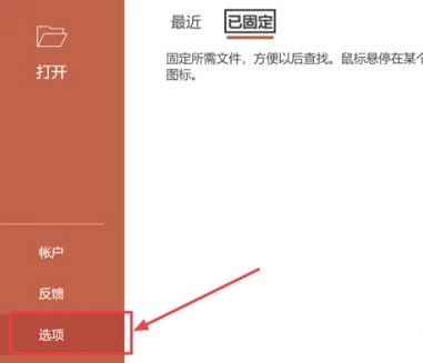 在PPT窗口左侧功能列表中,点击“选项”项。