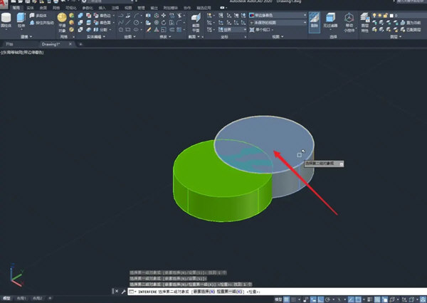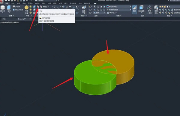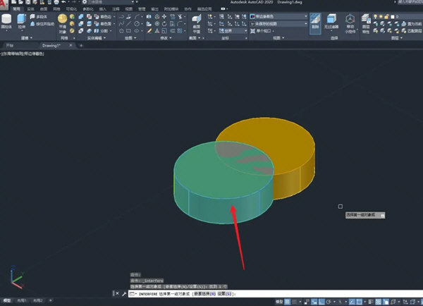 认识干涉检测的位置,如图所示,干涉用于检测两组实体图形之间是否有碰撞或者交叉。如图所示。
