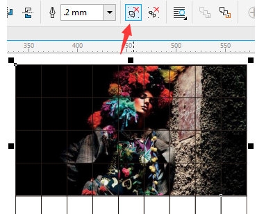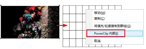 2、在工具箱中找到【图纸工具】,设置好图纸的行、列数,在画布中拖出,右击选择【PowerClip内部】