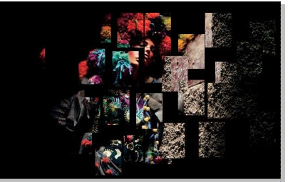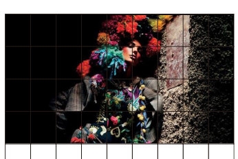 5、再用选择工具移动小图片的位置,双击矩形工具,填充黑色作为图片背景,框选所有,鼠标右键单击调色板可改变线条轮廓颜色,这样分割均匀的小块分布显示的效果就完成了