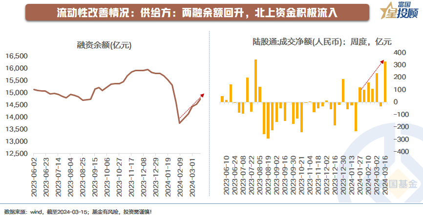 4)流动性改善情况:供给方中:两融余额回升,北上资金积极流入