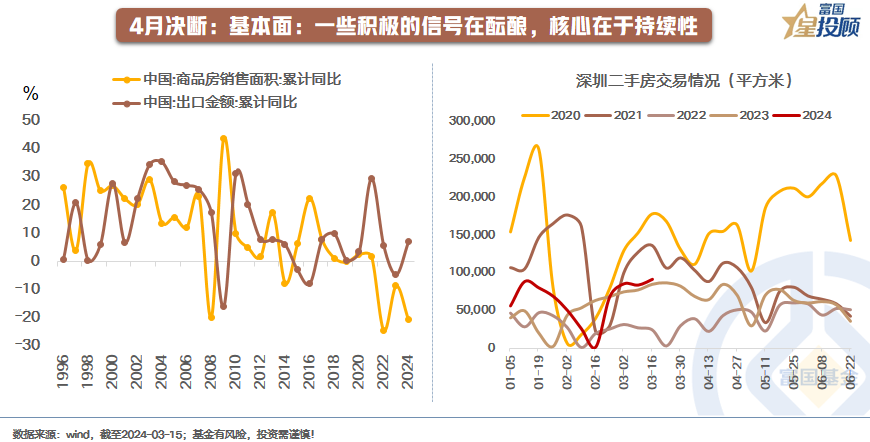 ②整体情况而言,最值得关注的点或在于:2023年是历史上**一次出口增速、地产销售增速均是负增长的年份。而进入2024年,这两个变量有积极变化迹象:出口方面,开年已是正增速。地产方面,随着一些一线城市地产政策的进一步优化,二手房市场成交已有所回暖。如果这两项趋势能够延续下去,对于A股市场将是积极的推动因素。