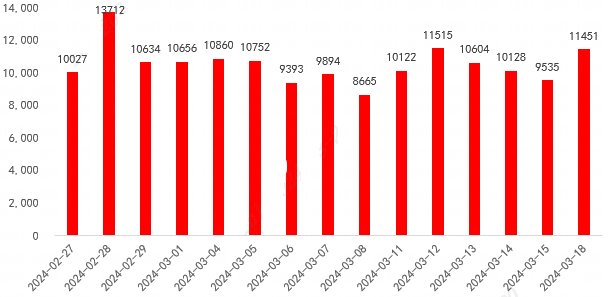 沪深两市成交量(万亿)2024/2/27-2024/3/20