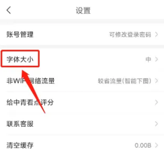中青看点在哪里设置字体大小