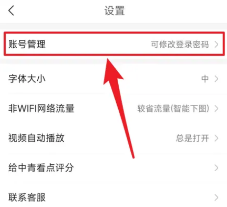 **步,打开中青看点app,点击设置,点击账号管理。
