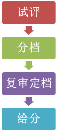 复审定档环节。各组分档结束,由组长组织评卷教师对答卷初步分档结果进行审核,对档位差超过预设值的,集体研究确定**档位,确保分档准确无误。