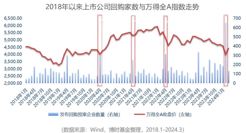 特别是去年以来,监管层对于上市公司股份回购机制的重视程度不断提升。通过修订《上市公司股份回购规则》、将市值管理纳入央企负责人的考核等等方式,来推动上市公司重视回购并维护股东权益。