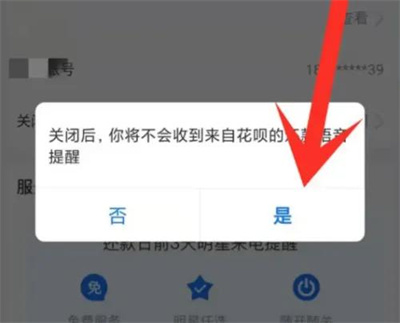4. 当页面中弹出一个提醒窗口时,在其中点击“是”,就不会再接收到来自花呗的还款语音提醒了。