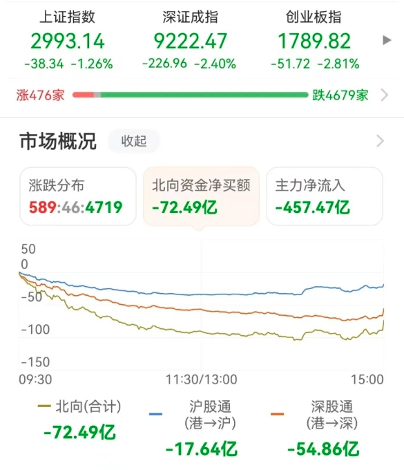由此带来的是外资撤离,亚太股市走弱,全天北向资金净流出72.49亿元,A股大跌。