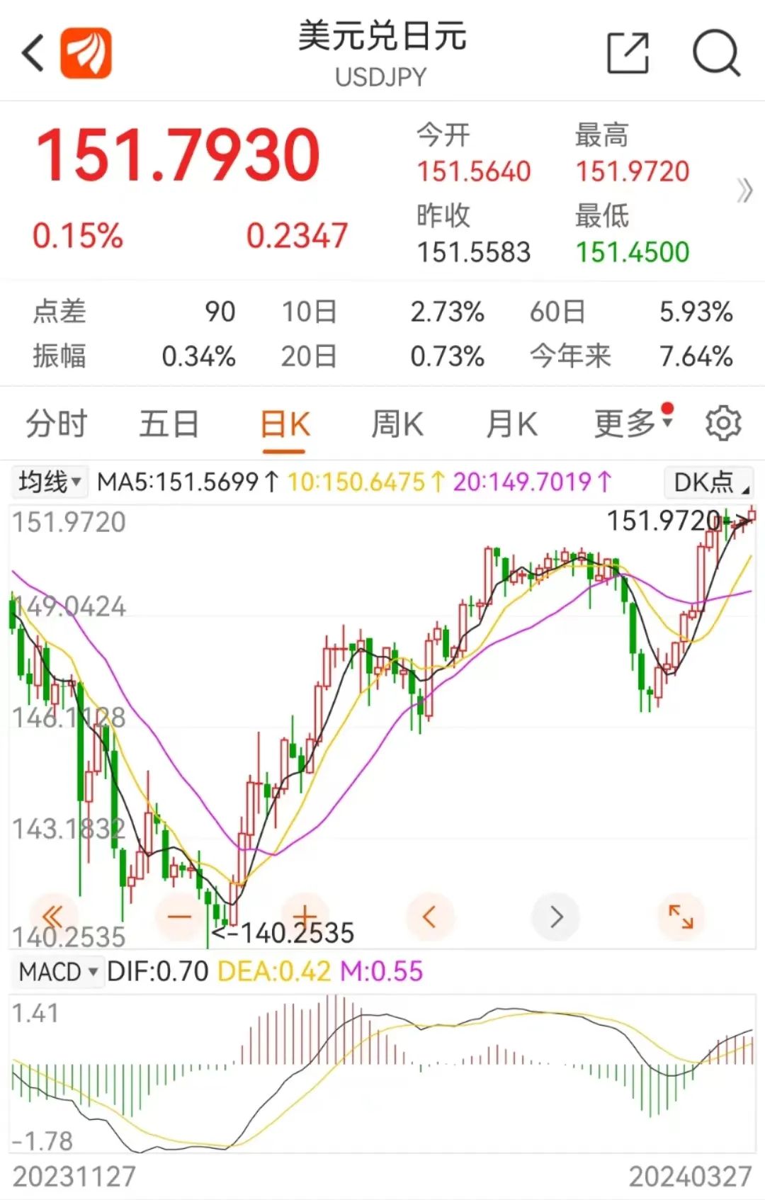 这一番讲话无疑动摇了日本央行后续宽松的货币政策预期,日元瞬间大跳水,进而引发美元飙升,美元兑日元日内持续走高,盘中升至1990年以来**水平,一度触及151.97。
