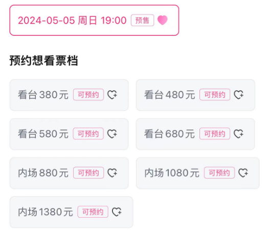 演唱会票价:看台:380/480/580/680 内场:880/1080/1380