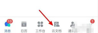 1. 点击打开手机中的飞书软件进入后,在页面底部的选项栏里点击“云文档”这一项打开。