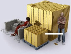 按照每克黄金388元人民币计算(略去今日金价元以下的数),一吨重的黄金应该价值3.88亿元人民币。