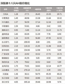 万科A(000002)、潍柴动力(000338)、鞍钢股份(000898)、丽珠集团、中兴通讯、金风科技、中联重科、比亚迪、中集集团、海信科龙、东江环保、晨鸣纸业、经纬纺机、东北电气、新华制药、山东墨龙、浙江世宝。在这17家A H上市公司中,A股较H股折价多的股票主要有三只,分别是鞍钢股份、万科A、潍柴动力