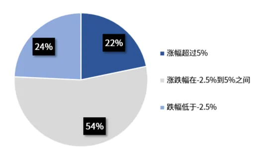 数据来源:Wind,统计偏股混合型基金指数自2004年1月至2023年4月共计232个月的月度涨跌幅分布情况;其中,52个月份月涨跌幅超过5%,占比22%;125个月份月涨跌幅在-2.5%到5%之间,占比54%;55个月份月涨跌幅低于-2.5%,占比24%。