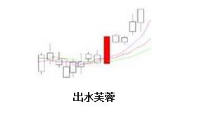 是五日或十日均线**过月均线,股价向上拉升,表明股价见底,庄家拉升开始. 出水芙蓉是在五日和十日,三十日均线上一点就是出水芙蓉