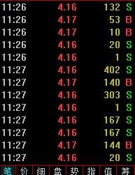 S代表的是主动性卖单,B代表的是主动性买单。B,英文BUY的缩写,就是主动买入的意思,就是您是看好这支股票就主动买的意思,你可以理解为在这个价位有这多多的成交量成交是因为投资者主动买入的原因。S是英文SALE的缩写,主动卖出的意思,就是不看好这支股票想卖掉的意思。也就是在这个价位成交的股票是因为投资者主动卖出导致成交的。其中紫色表示都是500手以上的大单,小于500手的都是黄色表示(可以自己设置调整颜色)。