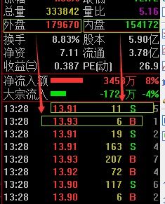 B是主动买盘成交量,S是主动卖盘成交量.实际操盘意义不大,大资金可以采用各种手段买卖.涨停和跌停的买卖盘会比较明确,都是单向大单连续出现.