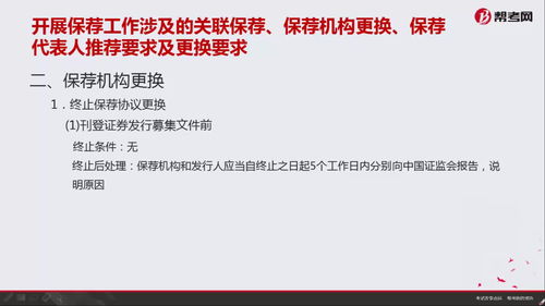 1、简单的说,企业上市相当于把股票卖给大众,那么企业是否符合上市要求、提供给的资料是否真实需要有人去鉴定、保证,即需要有人来“保荐”,类似于给企业做保。2、同时,企业上市后的一段时间,要有人来监督企业持续符合监管要求,这个也是保荐机构的责任之一。3、这个保荐机构由证监会来管理,需要取得保荐业务牌照。4、保荐机构“保”的范围比较有限,主要是保证企业上市申请文件的真实性、完整性、不误导。并不保证企业持续盈利或持续增长。