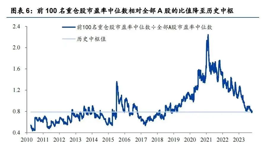 但“均值回归”是资本市场的铁律,当下的基金重仓股已经经历了**的“出清”,估值亦从3年前的大幅溢价转为折价,得以轻装上阵。