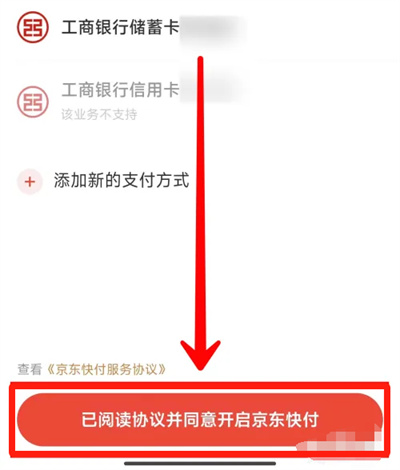 5. **在进入的页面里设置扣款顺序,并在底部点击“已阅读协议并同意开启京东快付”即可。