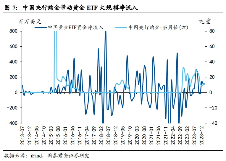 与此同时,在央行购金行为的带动下,民间对黄金投资的热情也**火热!黄金ETF发生连续净流入,而其他**的黄金ETF在同期为净流出。(资料来源:国泰君安证券,《本轮黄金大涨背后的底层逻辑——大宗商品瞭望系列一》)