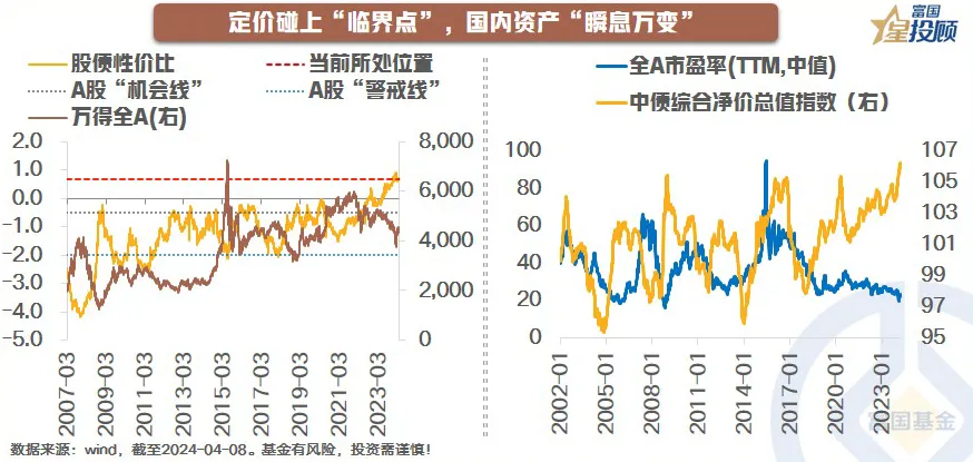 随着过去两年A股风险的释放,以及三年“债牛”的积累,当前**资产迎来了性价比的临界点,股债性价比和中债综合净价指数不断突破历史极值。虽然,当下难以判断拐点是否来临,但变动可能随时到来。
