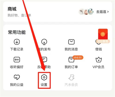 1. 首先打开手机中的番茄畅听软件进入后,在首页面的右下角位置点击“我的”切换进入,再在我的页面“常用功能”下方选项里找到“设置”,在上面点击选择。
